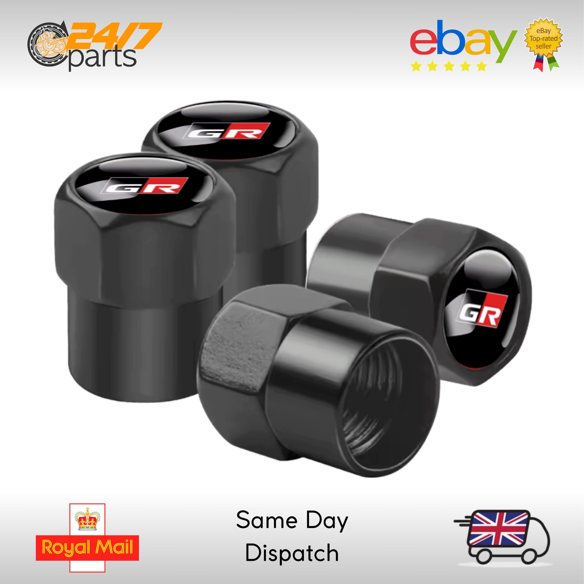 Valve Stem Dust Caps | Black Metal | fits Toyota GR Yaris Corolla GR86 Supra